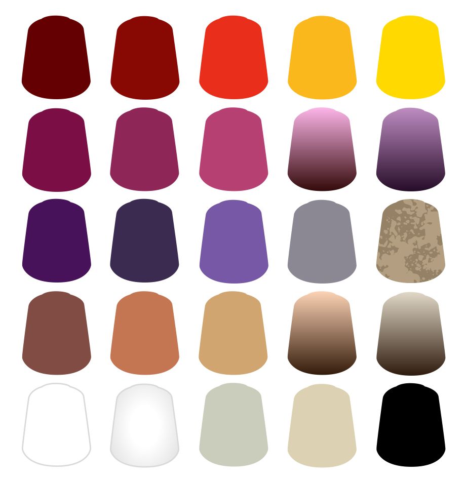 The various strains of Tyranids can be identified by their distinctive colouration and markings on their chitinous carapace. This paint bundle includes all the colours you need to achieve a Parade Ready finish on the purple, red, and bone-coloured Tyranids of Hive Fleet Leviathan, including parched-earth bases to show the dying worlds they fight over. Plus, you'll save money when compared with buying the contents individually.